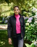 Warm backed woven softshell XPT waterproof and breathable fabric, Fully printable fabric, Wind resistant, Inner zip guard, Two lower zipped pockets and one chest pocket, * Black and Navy available in sizes 8 and 22
