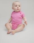 Short sleeve bodysuit, Organic cotton fabric, Self coloured bindng around envelope neck, cuffs and leg binding, YKK popper fastening on gusset, Size tab only